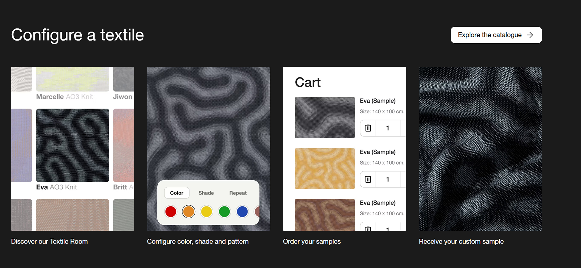 The result gave our new target clients like architects access to our collection with a new configurator feature, which was a simple way to make a custom colored textile in a scale of their choice, while still offering interior designers to create from scratch using Create™.
