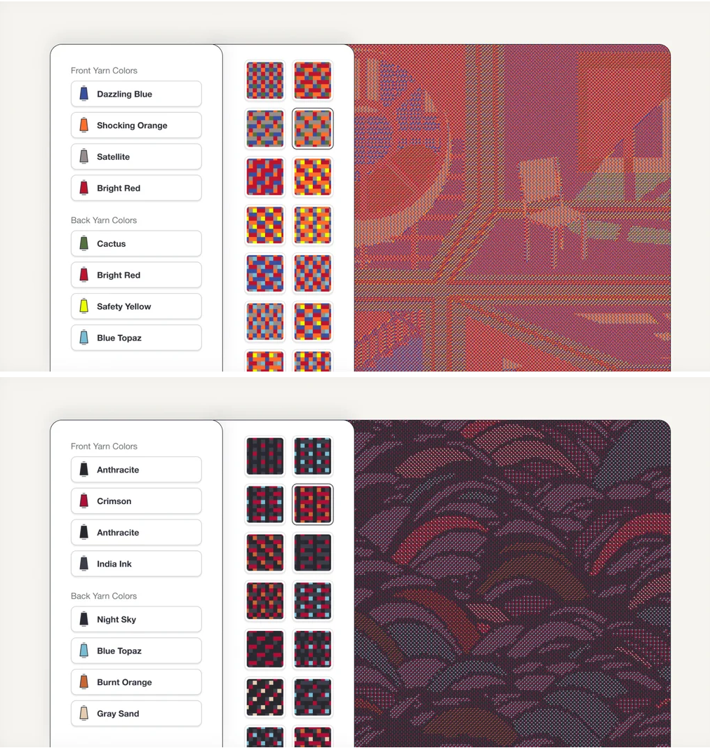 Testing the improved workflow & newly updated AO knits with interior designers like Daphna Laurens or RENS for Dutch Design Week 2024, where they successfully created their own custom design on the Create™ platform and showcased the resulting products.