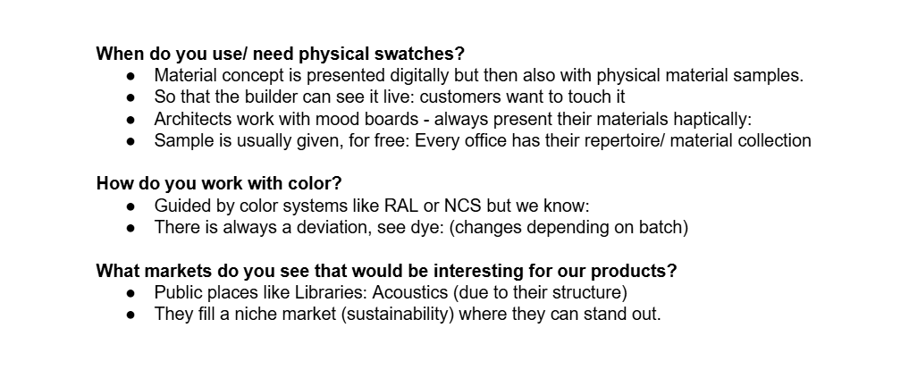 Example of questions to understand the way of working with textiles as an architect