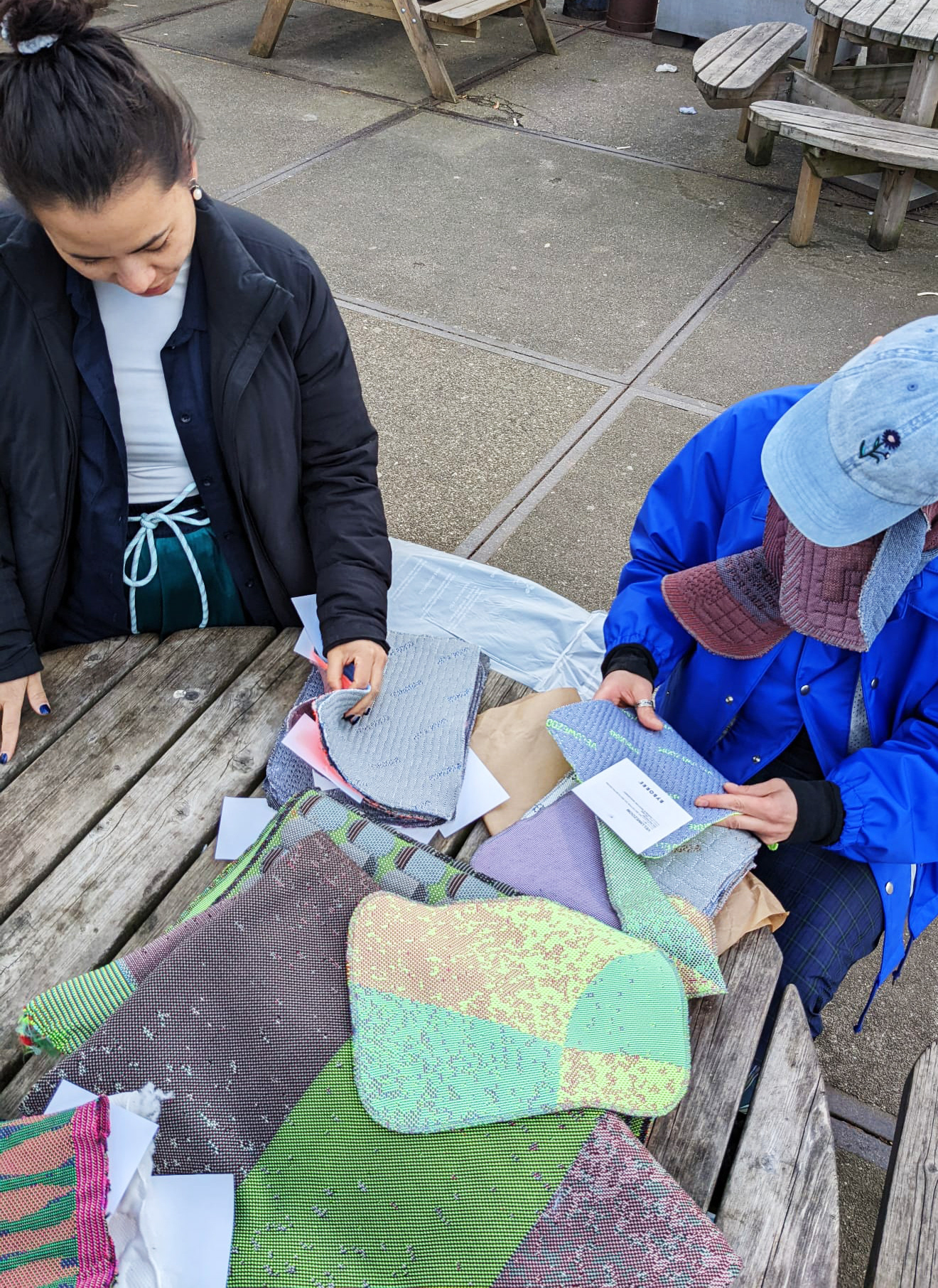 Reviewing knit samples and structures with textile designer Miko Kocoń